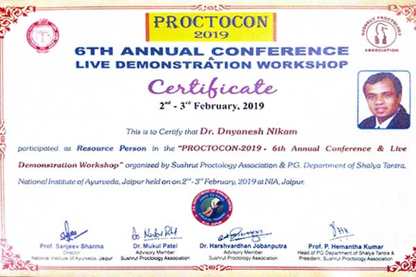 Delivered lecture as a Faculty Member in Sushrut Proctology Association, Surat Conference on Fissure in ano & Ayurvedic Treatment on 6th & 7th January 2018.