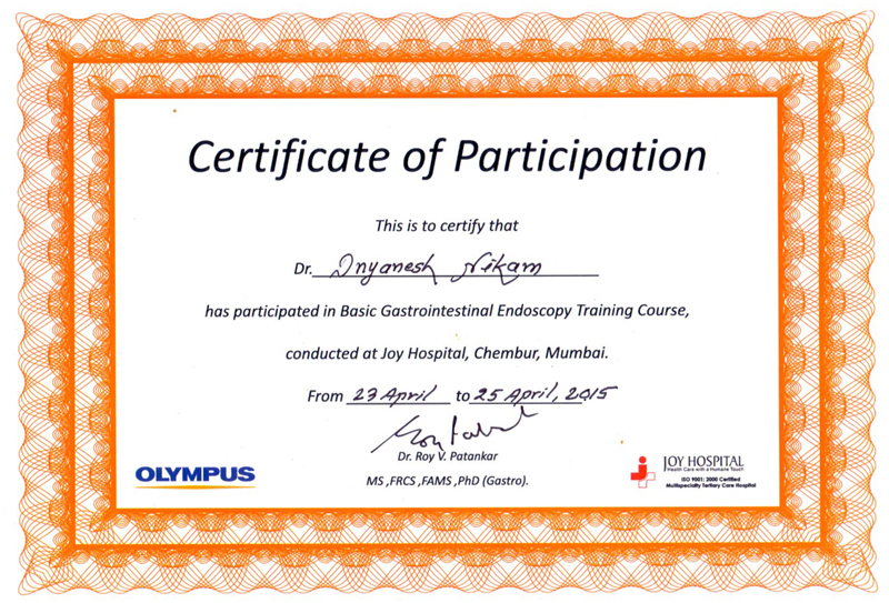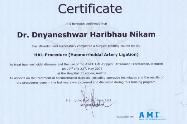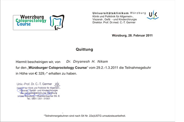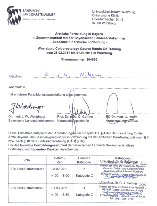 Attended Hands On Training In Proctolgy at Wuerzburg Germany March 2011.