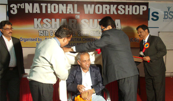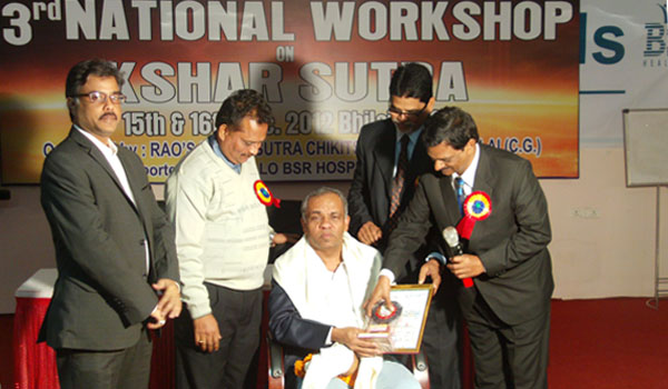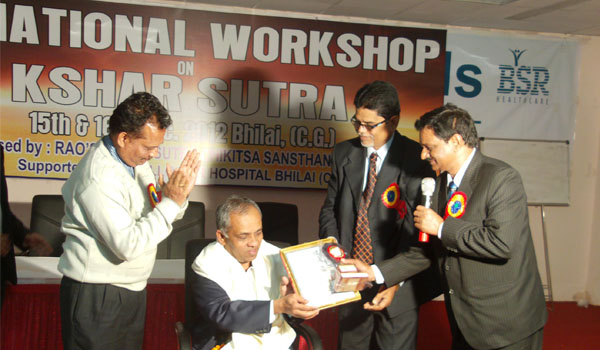 Delivered Lecture as a faculty Member in Rao Ksharsutra Institute, Bhillai Conference on Constipation & Ayurvedic View & Felicitated by Rao Institute as Life Time Achievement Award by Hands of Dr. Bhaskar Rao (Tirupati) on 15th & 16th Dec 2012.