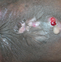 - Wound healed with Fibrosis, daily painful dressing & chances to developing fistula